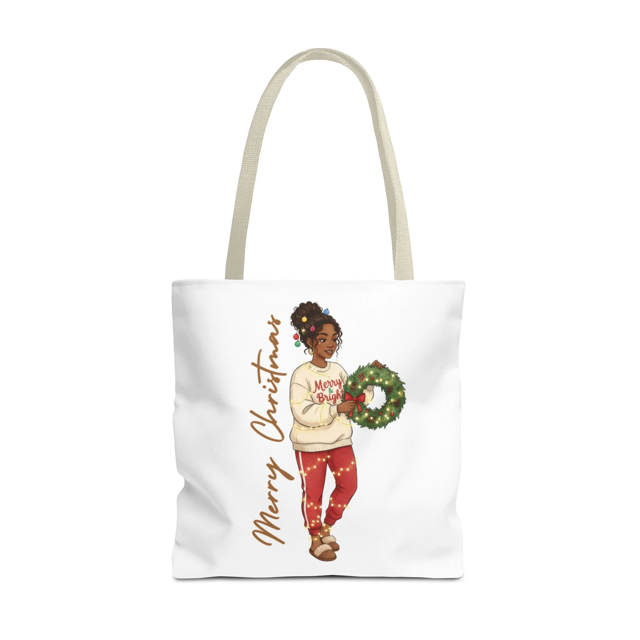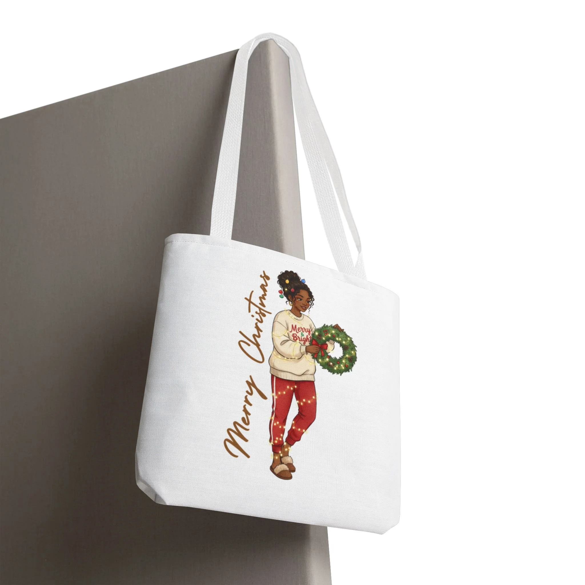 Bags Wrapped in Christmas Tote Bag, Holiday Gift, Festive Shopping Bag, Cute Wreath Design, Reusable Eco-Friendly Tote from US$19.05 View Options